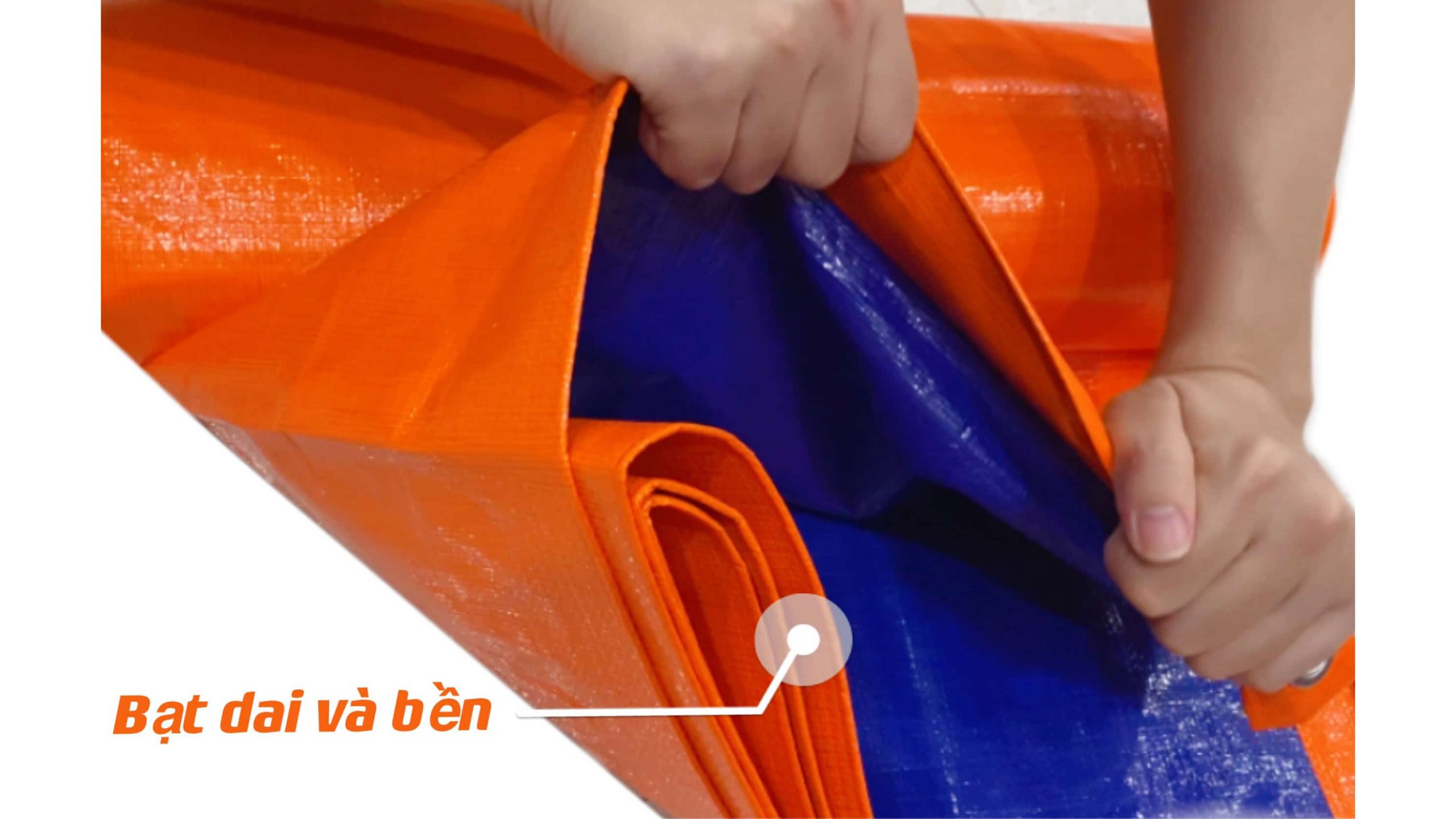 Chất liệu: Polyethylene (PE) hoặc Polypropylene (PP), giúp bạt có độ bền cao và khả năng chống rách, chịu lực tốt.