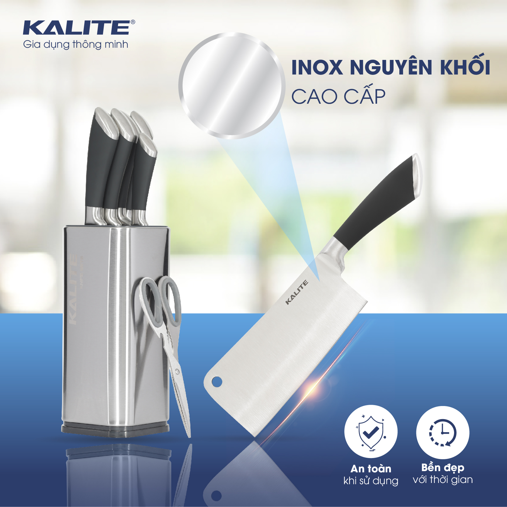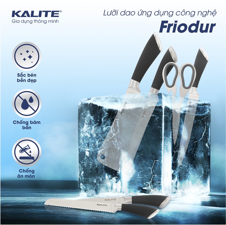 Những chiếc dao, kéo của Kalite đều được sản xuất dựa trên công nghệ độc quyền của Đức. Chất liệu Inox tạo nên sản phẩm là Inox nguyên khối cao cấp, giúp lưỡi dao tạo được sự liền mạch hơn, hạn chế khe hở xuất hiện để vi khuẩn có cơ hội xâm nhập ảnh hưởng xấu đến thực phẩm. Chất liệu Inox này cũng tạo nên bề mặt dao sáng bóng, tăng cao khả năng chống bám bẩn và giúp cho quá trình vệ sinh trở nên dễ dàng hơn.