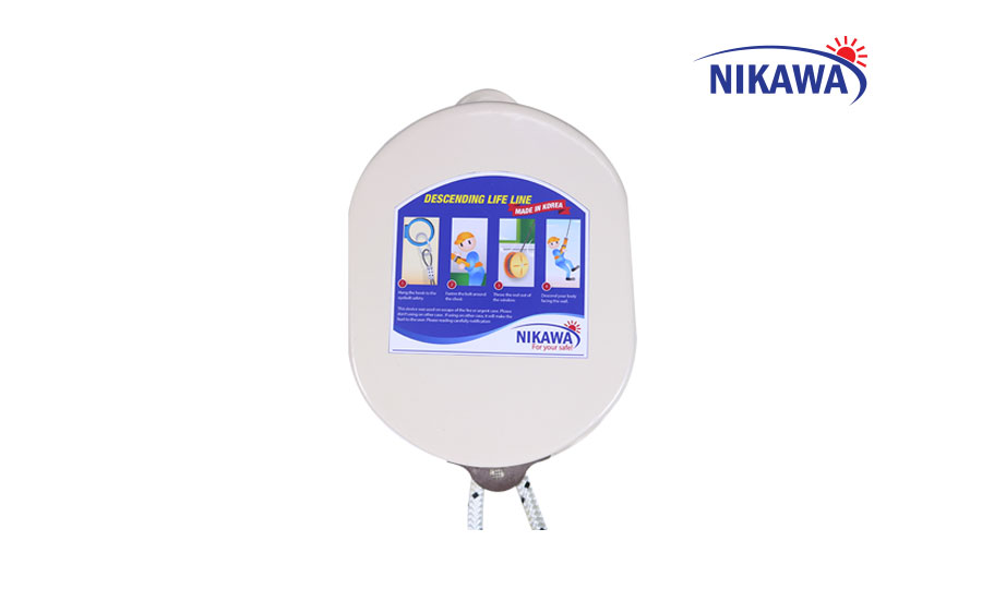 Phần dây sản phẩm bộ dây thoát hiểm tự động Nikawa được làm từ dây cáp máy bay đặc biệt phủ sợi cotton không bị xoắn khi sử dụng, chống cháy hiệu quả ngay cả trong trường hợp hỏa hoạn. Đồng thời, giảm ma sát, tăng độ bền, có khả năng chịu lực cao lên tới 900~1000kg.