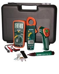Bộ kit bao gồm: Đồng hồ vạn năng EX430, Ampe kìm MA200, Súng đo nhiệt độ hồng ngoại 42510