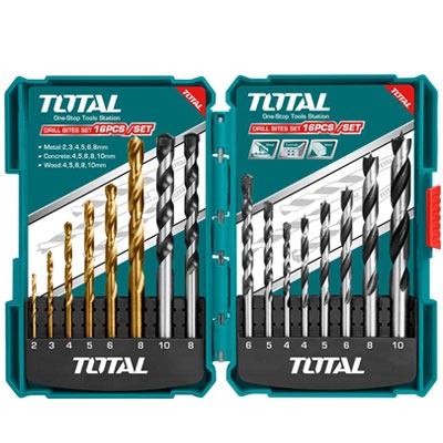 Bộ mũi khoan đa năng Total TACSD6165 gồm 16 mũi khoan có kích thước và chiều dài khác nhau, chỉ cần kết hợp với một chiếc máy khoan chuyên dụng là bạn có thể khoan trên nhiều chất liệu như: bê tông, sắt, gỗ, gạch men… một cách dễ dàng, nhanh chóng. - Thiết kế nhỏ gọn, dễ dàng sử dụng và bảo quản, thuận tiện cất giữ trong hộp dụng cụ hoặc mang theo bên người khi làm viêc.