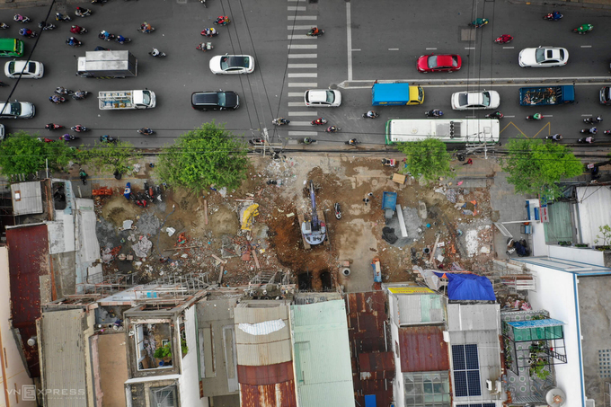 Hơn 10 căn nhà trên đường Trường Chinh, phường 14, Tân Bình được tháo dỡ bàn giao mặt bằng cho Metro Số 2, hồi tháng 8/2020. Ảnh: Hữu Khoa.