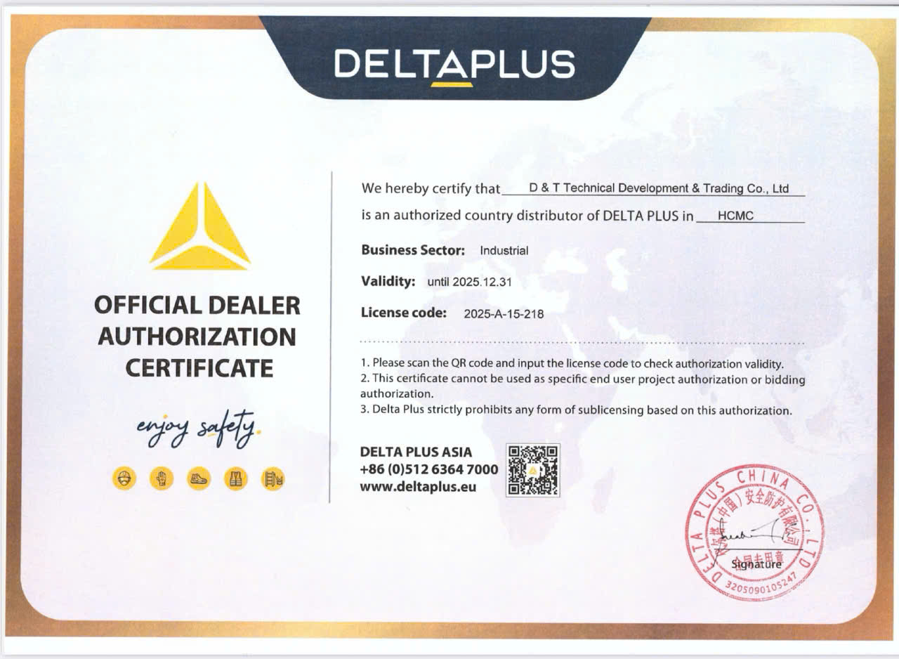 CÔNG TY D&T – ĐẠI DIỆN PHÂN PHỐI CHÍNH THỨC CỦA DELTA PLUS TẠI VIỆT NAM