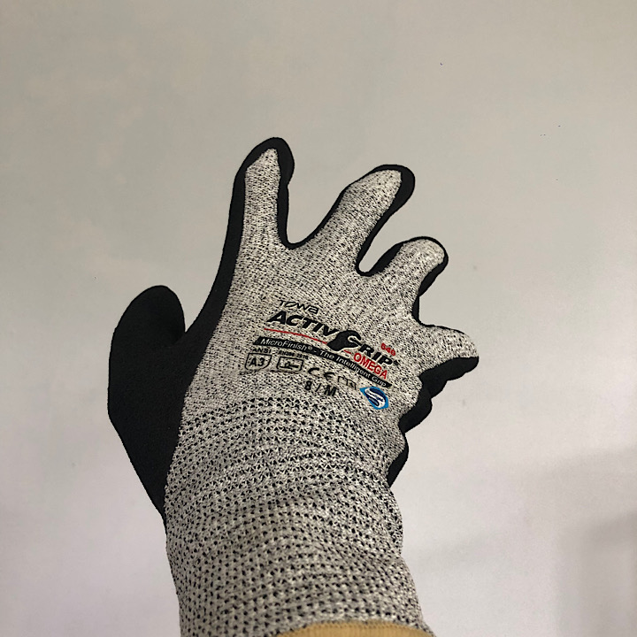 An toàn chống cắt: Với sợi HPPE, ActivGrip ™ Omega mang đến khả năng chống cắt cao (cấp độ 5). Các sợi HPPE đảm bảo rằng ActivGrip ™ Omega phù hợp với các công việc khó khăn và nguy hiểm mà không mất đi sự khéo léo và độ bền.