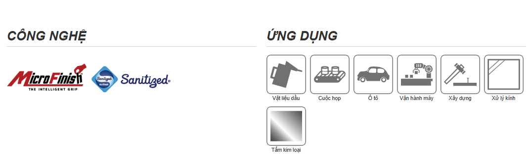 Công nghệ MicroFinish® nguyên bản của Towa mang lại độ bám tốt nhất trong ngành trong điều kiện khô, ướt và dầu.
