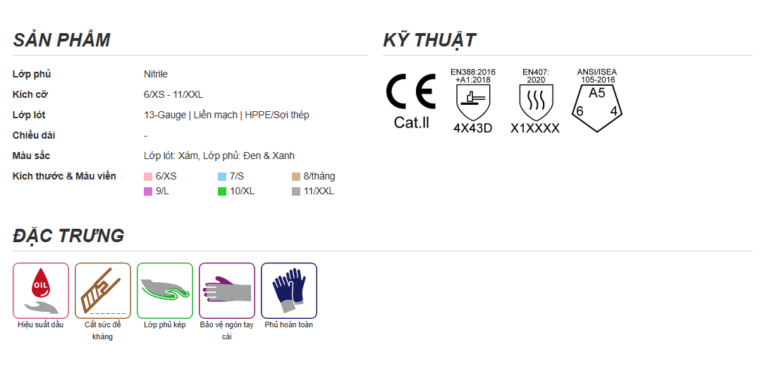 Lớp lót HPPE liền mạch 13 gauge nhẹ và thiết kế tiện dụng đảm bảo sự thoải mái tối đa mà không làm giảm sự khéo léo.