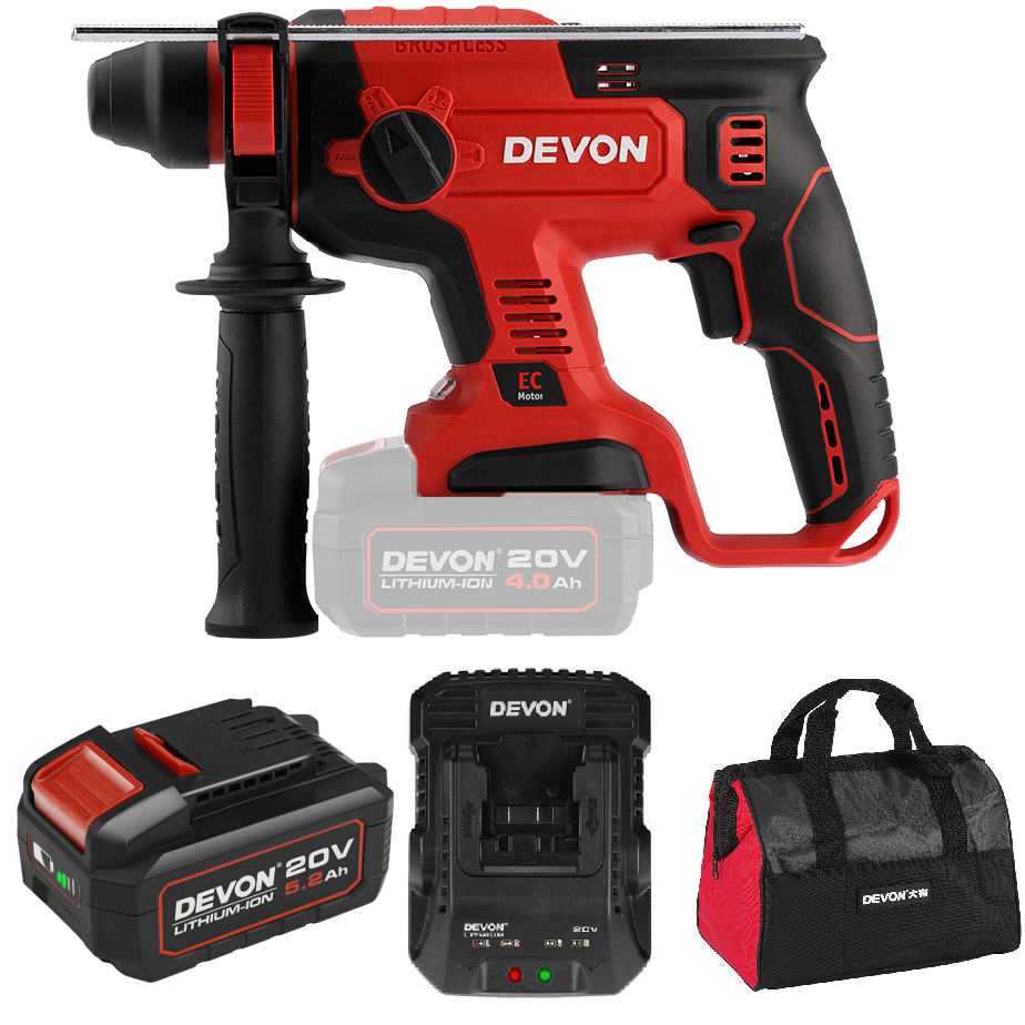 Máy khoan búa Devon 5401 Li-20RH sử dụng động cơ không chổi than giúp máy hoạt động mạnh mẽ. Máy sử dụng chất liệu cao cấp, bền bỉ có khả năng chịu va đập tốt.