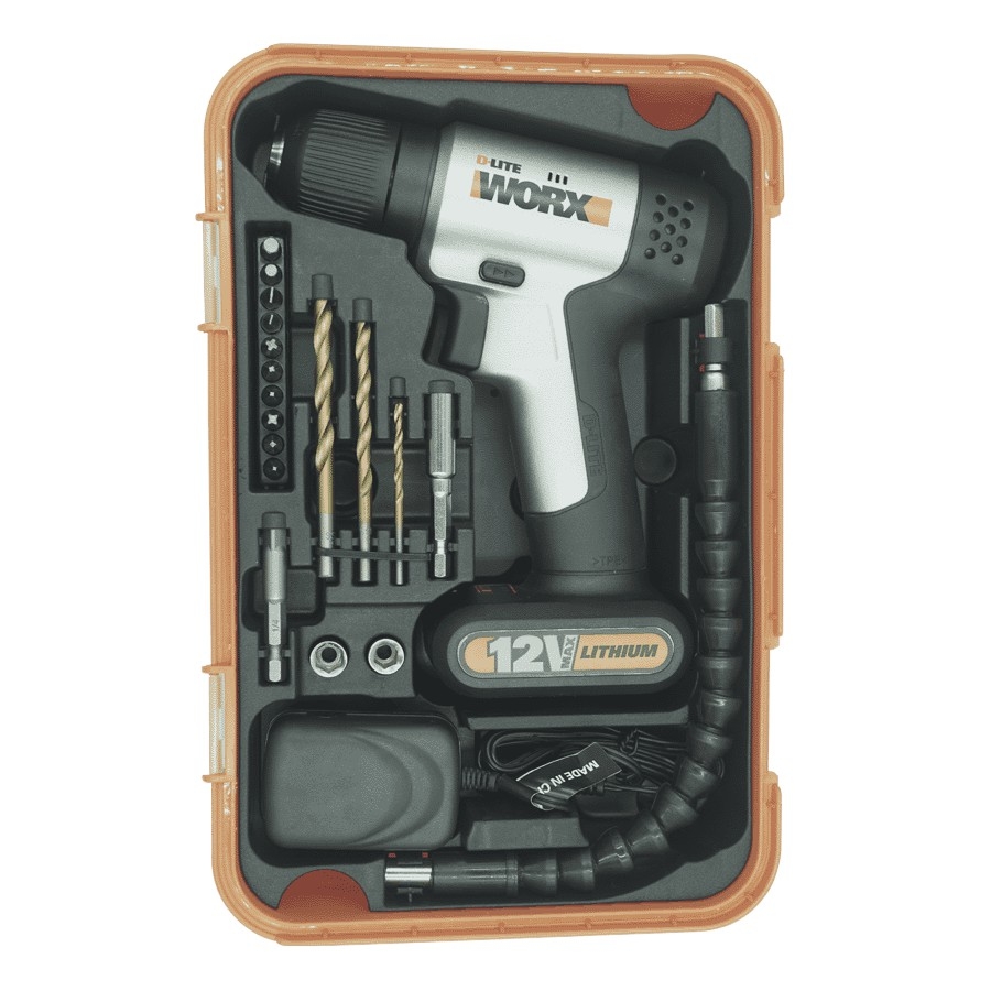 Bộ phụ kiện đầy đủ gồm: 10 loại đầu vặn vít, 1 thanh nối đầu vặn vít, 1 dây vặn vít đa năng 25cm, 2 đầu khẩu 7-8mm, 1 thanh nối đầu khẩu 6mm, 3 mũi khoan kim loại HSS 3-5-6mm, hộp đựng nhựa