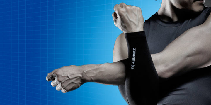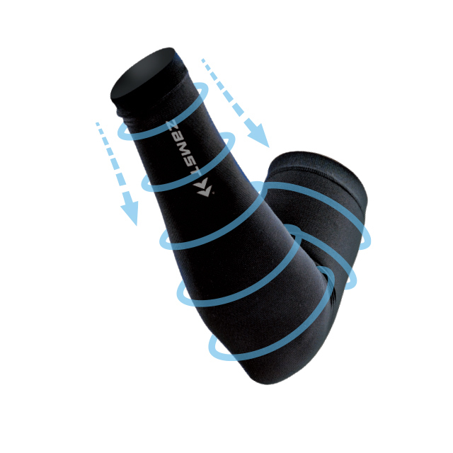 With a design that gradually reduces compression from the wrist to the upper arm, the product supports the entire arm. Compression on the entire arm also helps reduce waste motion of the muscles that lead to fatigue