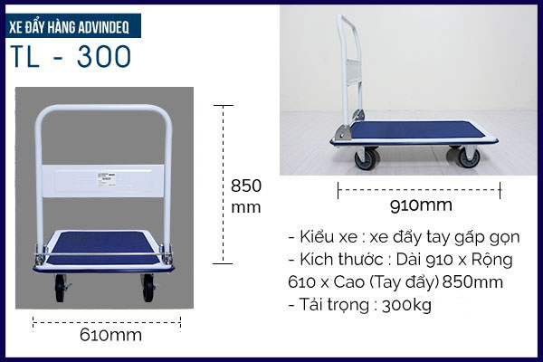 - Kích thước : Dài 910 x Rộng 610 x Cao (Tay đẩy) 850mm